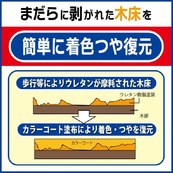 まだらに剥がれた木床を簡単に美しく着色・つやを復元します。