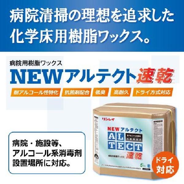 NEWアルテクト速乾は、消毒用エタノールに耐性を有し、通行制限のしにくい病室、廊下などでも短時間で作業完了する速乾性樹脂ワックスです。