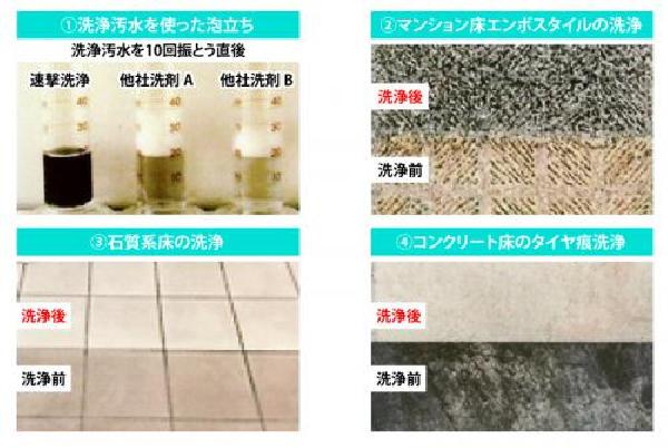 マンション廊下のエンボスタイルの目地汚れに最適な洗浄力を発揮します。再付着防止剤配合です。