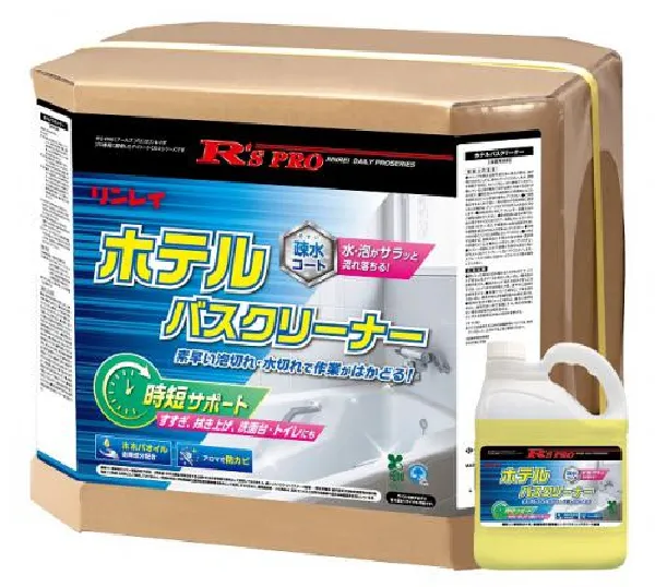 R’S PRO ホテルバスクリーナーは、短時間でバスルーム清掃するハウスキーピングスタッフをサポートする中性浴室洗剤です。豊かな泡立ちながら、抜群の泡切れで洗浄、拭き上げ時間を短縮できます。洗浄するだけで「疎水コート」が形成され、洗浄後のすすぎ、拭き上げ作業がラクになります。