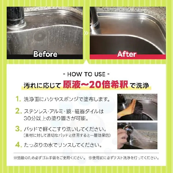 希釈率 汚れに応じて原液〜20倍希釈で洗浄