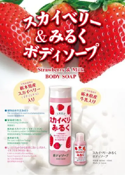 天然保湿成分栃木県産スカイベリー入り! 天然保湿成分栃木県産牛乳入り!