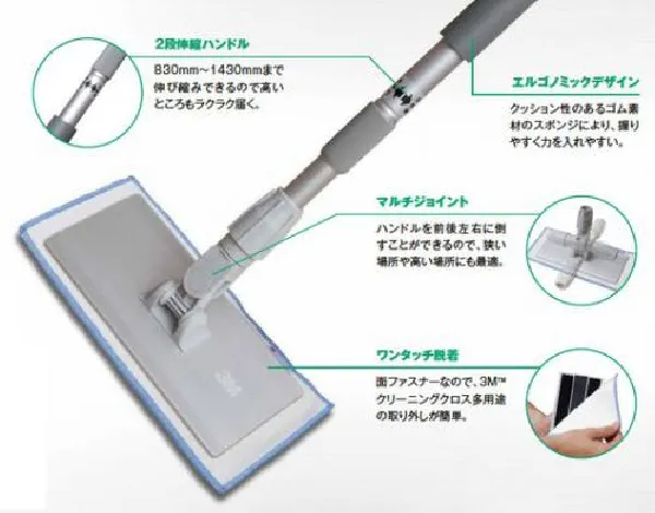 伸縮性のハンドルなので高いところにもクロスが届きます。