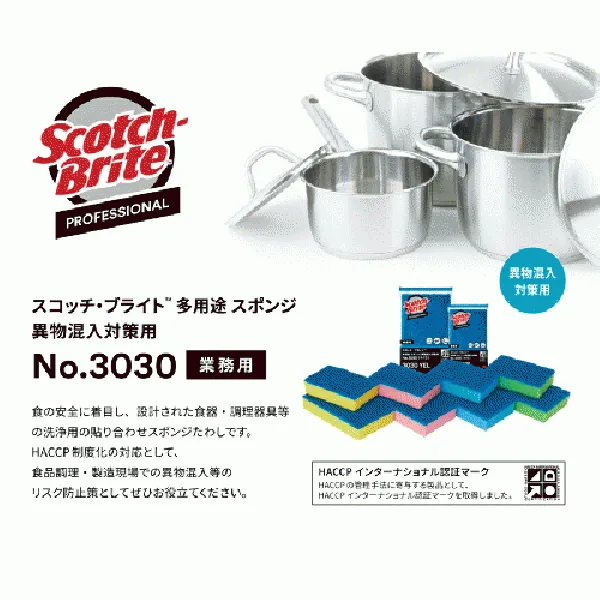 3M スコッチブライト 多用途スポンジ 異物混入対策用 No.3030 Sサイズ 1個