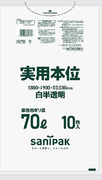 日本サニパック 業務用ゴミ袋 70L NJ79 白半透明 10枚×40冊