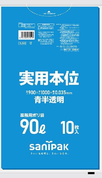 日本サニパック 業務用ゴミ袋 90L NJ91 青半透明 10枚×30冊