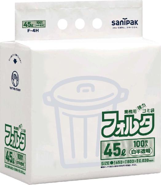 日本サニパック 業務用ゴミ袋 45L F-4H 白半透明 100枚×5冊