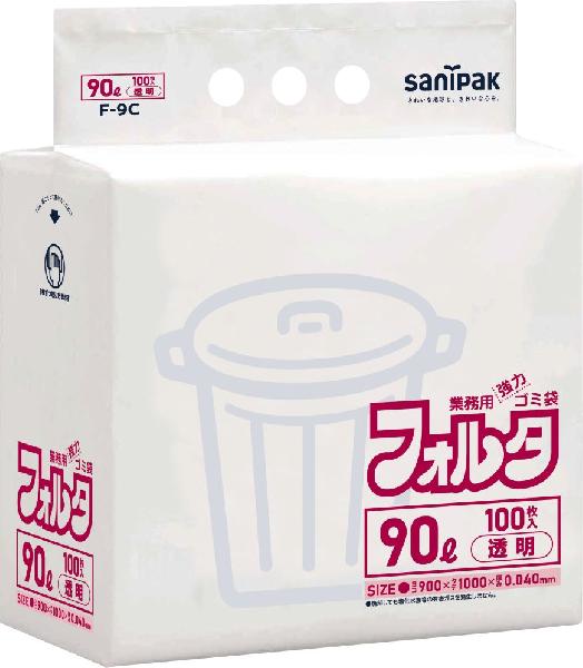 日本サニパック 業務用ゴミ袋 90L F-9C 透明 100枚×3冊