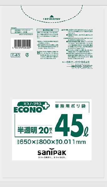 日本サニパック 業務用ゴミ袋 45L E-40 半透明 20枚×50冊