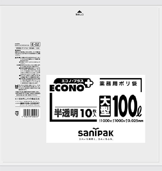 日本サニパック 業務用ゴミ袋 100L E-02 半透明 10枚×20冊