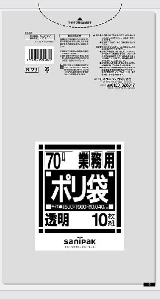 日本サニパック 業務用ゴミ袋 70L N-73 透明 10枚×40冊