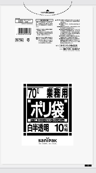 日本サニパック 業務用ゴミ袋 70L N-74 7白半透明 10枚×40冊