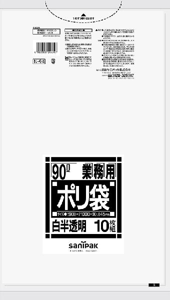 日本サニパック 業務用ゴミ袋 90L N-94 白半透明 10枚×30冊
