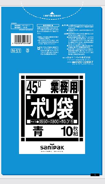 日本サニパック 業務用ゴミ袋 45L N-51 青 10枚×100冊