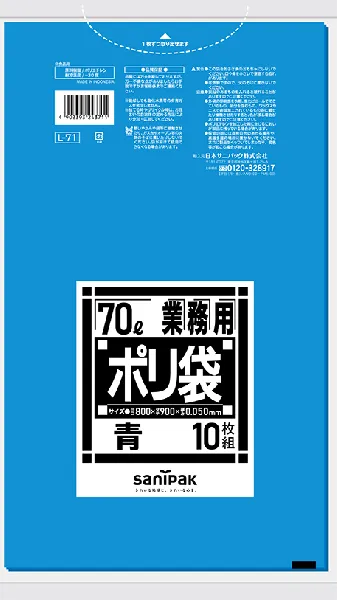日本サニパック 業務用ゴミ袋 70L L-71 青 10枚×20冊
