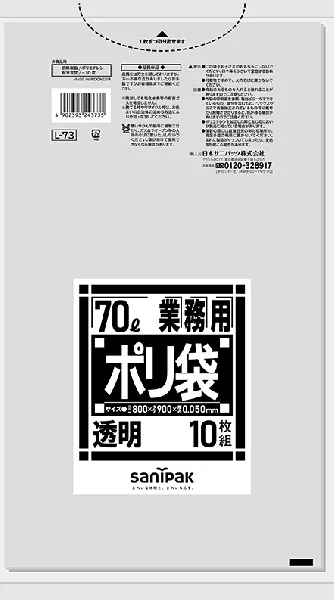 日本サニパック 業務用ゴミ袋 70L L-73 透明 10枚×20冊