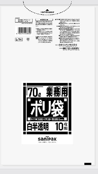 日本サニパック 業務用ゴミ袋 70L L-74 白半透明 10枚×20冊