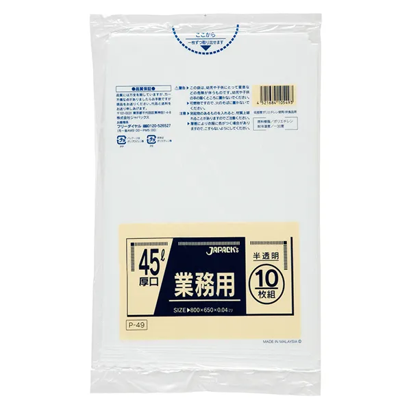 ジャパックス スタンダード 45L P-49 半透明 10枚×40冊入