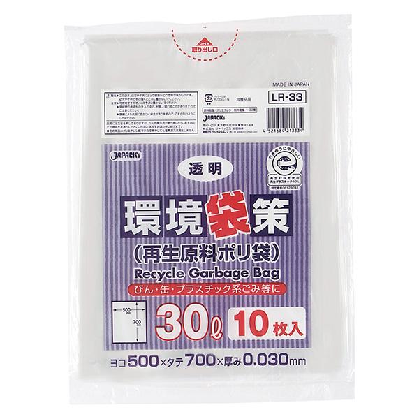 ジャパックス 環境袋策 30L LR33 透明 10枚×30冊入