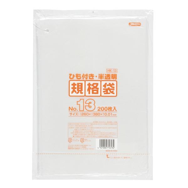 ジャパックス HD規格袋 ひも付き HK13 半透明 200枚×10冊×5箱入