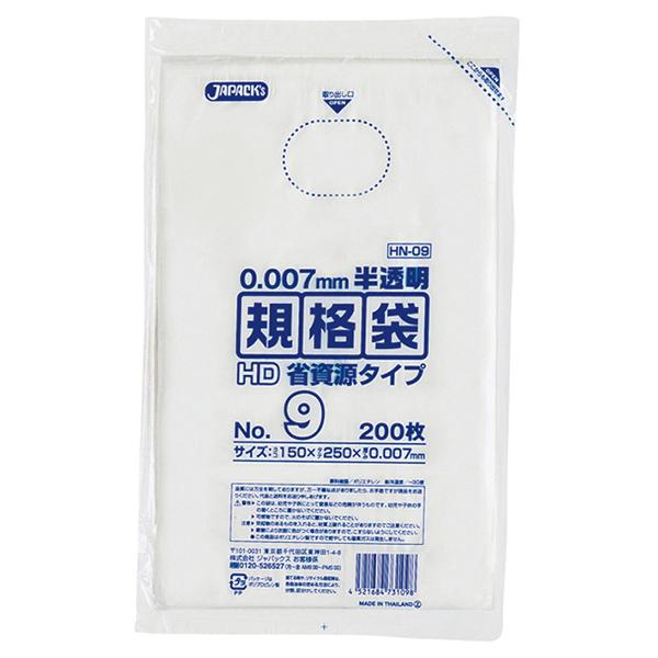 ジャパックス HD規格袋 HN09 透明 200枚×10冊×12箱入