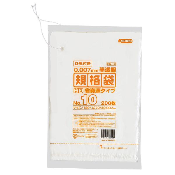 ジャパックス HD規格袋 ひも付き HQ10 半透明 200枚×10冊×10箱入
