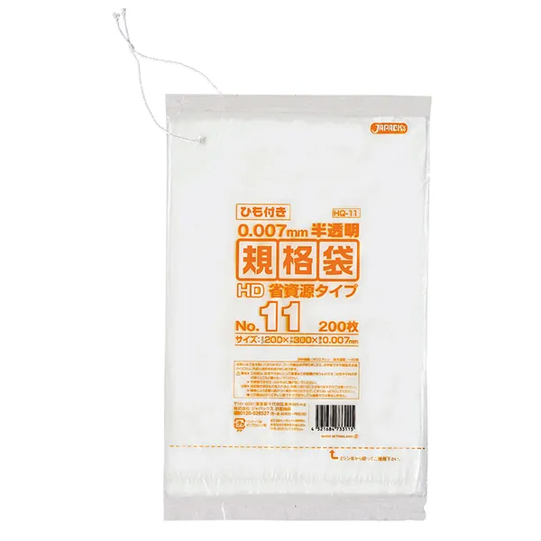 ジャパックス HD規格袋 ひも付き HQ11 半透明 200枚×10冊×8箱入