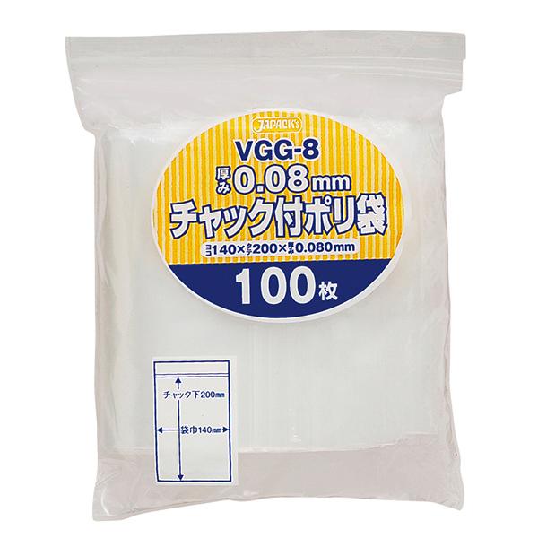 ジャパックス チャック付ポリ袋 VGG-8 透明 100枚×25冊入