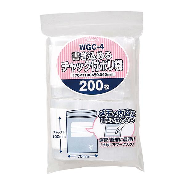 ジャパックス 書き込める チャック付ポリ袋 WGC-4 透明 200枚×65冊入