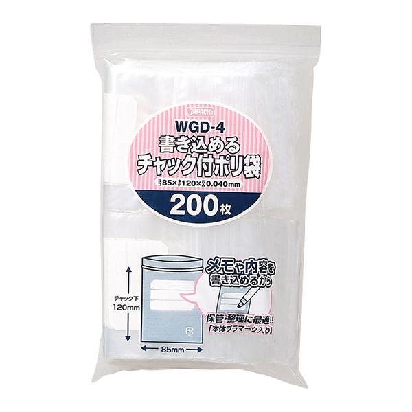 ジャパックス 書き込める チャック付ポリ袋 WGD-4 透明 200枚×50冊入
