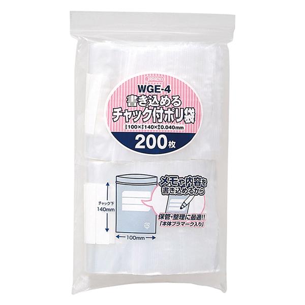 ジャパックス 書き込める チャック付ポリ袋 WGE-4 透明 200枚×40冊入