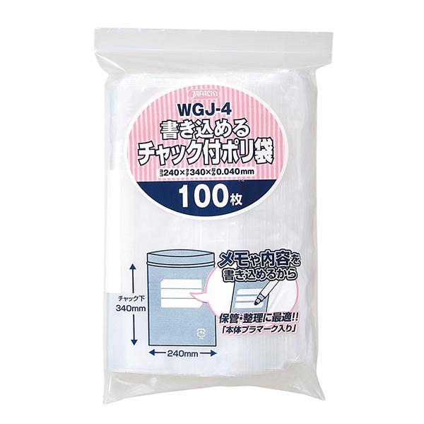 ジャパックス 書き込める チャック付ポリ袋 WGJ-4 透明 100枚×15冊入