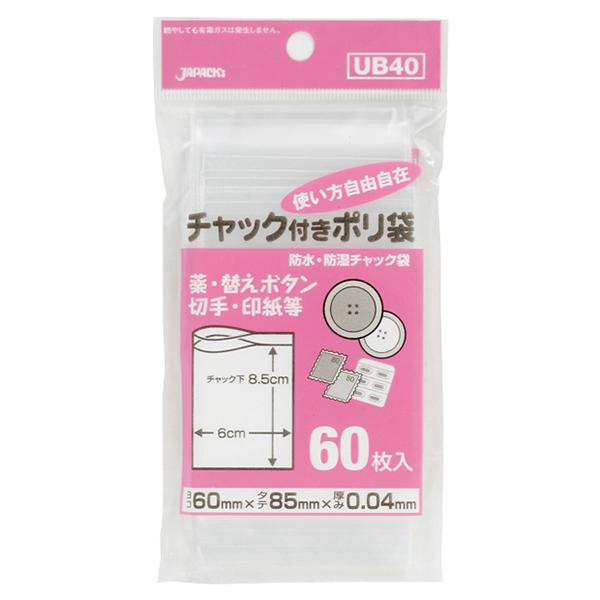 ジャパックス チャックポリ袋 UB40 透明 60枚×10x10冊入
