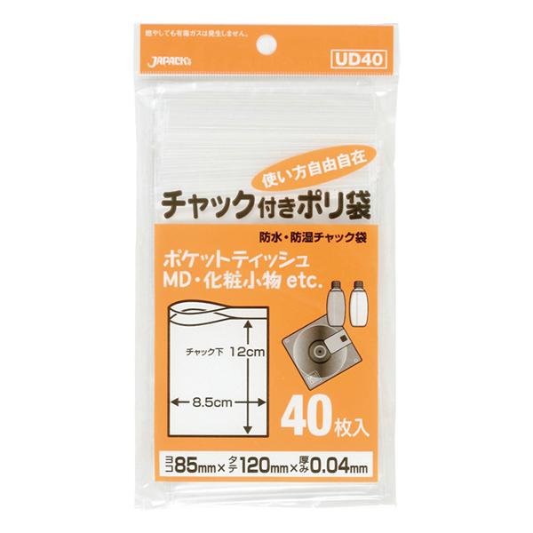 ジャパックス チャックポリ袋 UD40 透明 40枚×10x10冊入