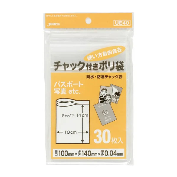 ジャパックス チャックポリ袋 UE40 透明 30枚×10x10冊入