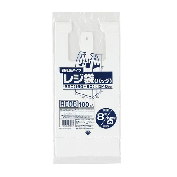 ジャパックス レジ袋シリーズ 関東8号/関西25号 RE08 乳白 100枚×20冊×4箱入