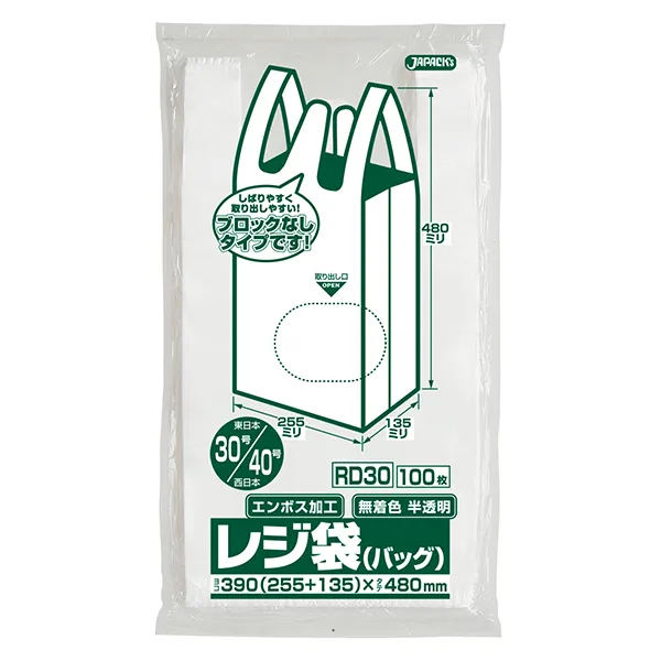 ジャパックス レジ袋シリーズ 関東30号/関西40号 ベロ付き RD30 半透明 100枚×10冊×3箱入