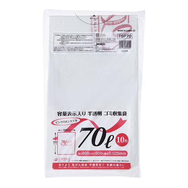 ジャパックス 容量表示入りポリ袋 70L TSP70 白半透明 10枚×40冊