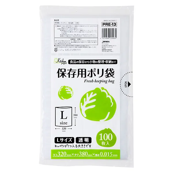ジャパックス 保存用ポリ袋 PRE13 透明 100枚×5冊×4袋