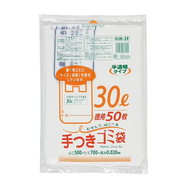 ジャパックス 手付きポリ袋シリーズ 容量表示入り 30L HJN39 白半透明 50枚×15冊
