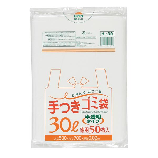 ジャパックス 手付きポリ袋シリーズ 30L HI39 半透明 50枚×15冊