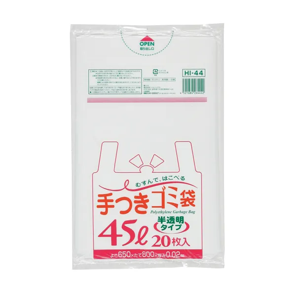 ジャパックス 手付きポリ袋シリーズ 45L HI44 半透明 20枚×30冊