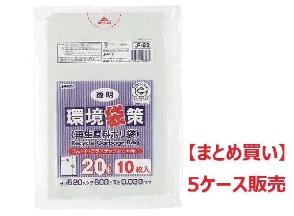 【まとめ買い】ジャパックス 環境袋策 20L LR23 透明 10枚×30冊【5ケース】