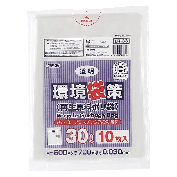 ジャパックス 環境袋策 30L LR33 透明 10枚×30冊