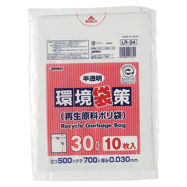 ジャパックス 環境袋策 30L LR34 半透明 10枚×30冊