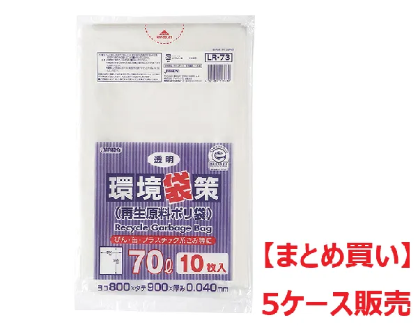【まとめ買い】ジャパックス 環境袋策 70L LR73 透明 10枚×30冊【5ケース】