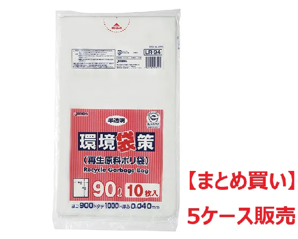 【まとめ買い】ジャパックス 環境袋策 90L LR94 半透明 10枚×30冊【5ケース】