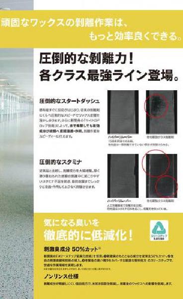 化学床材に塗布されたフロアーポリッシュ・水性ポリマータイプの被膜のはくり用。