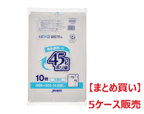 【まとめ買い】ジャパックス 環境袋策 45L RYC44 半透明 10枚×60冊入【5ケース】