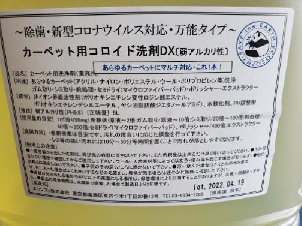 エコソフィ カーペット用コロイド洗剤DX 弱アルカリ 5L